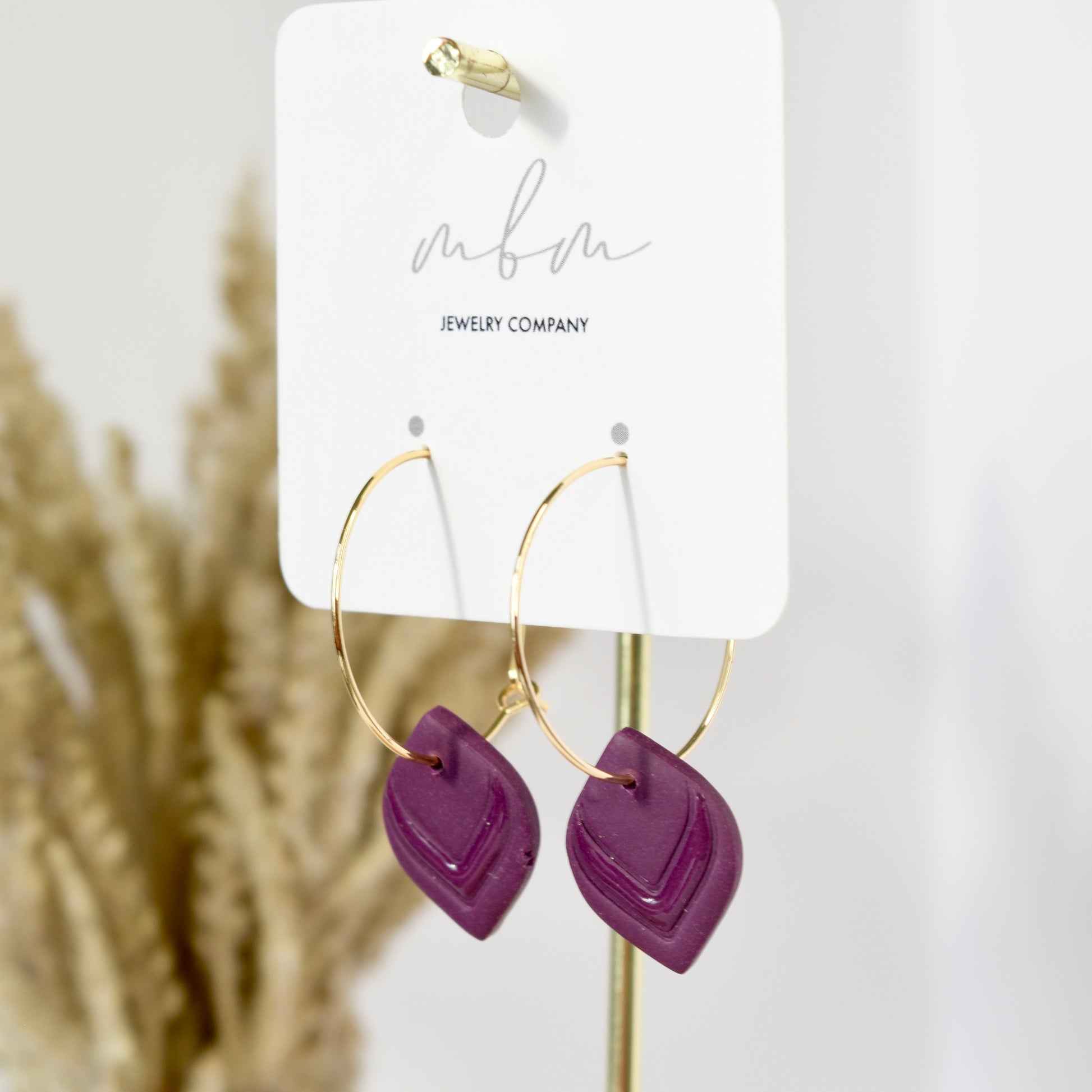 Hand-Cut Plum Polymer Clay, Stripe of Resin