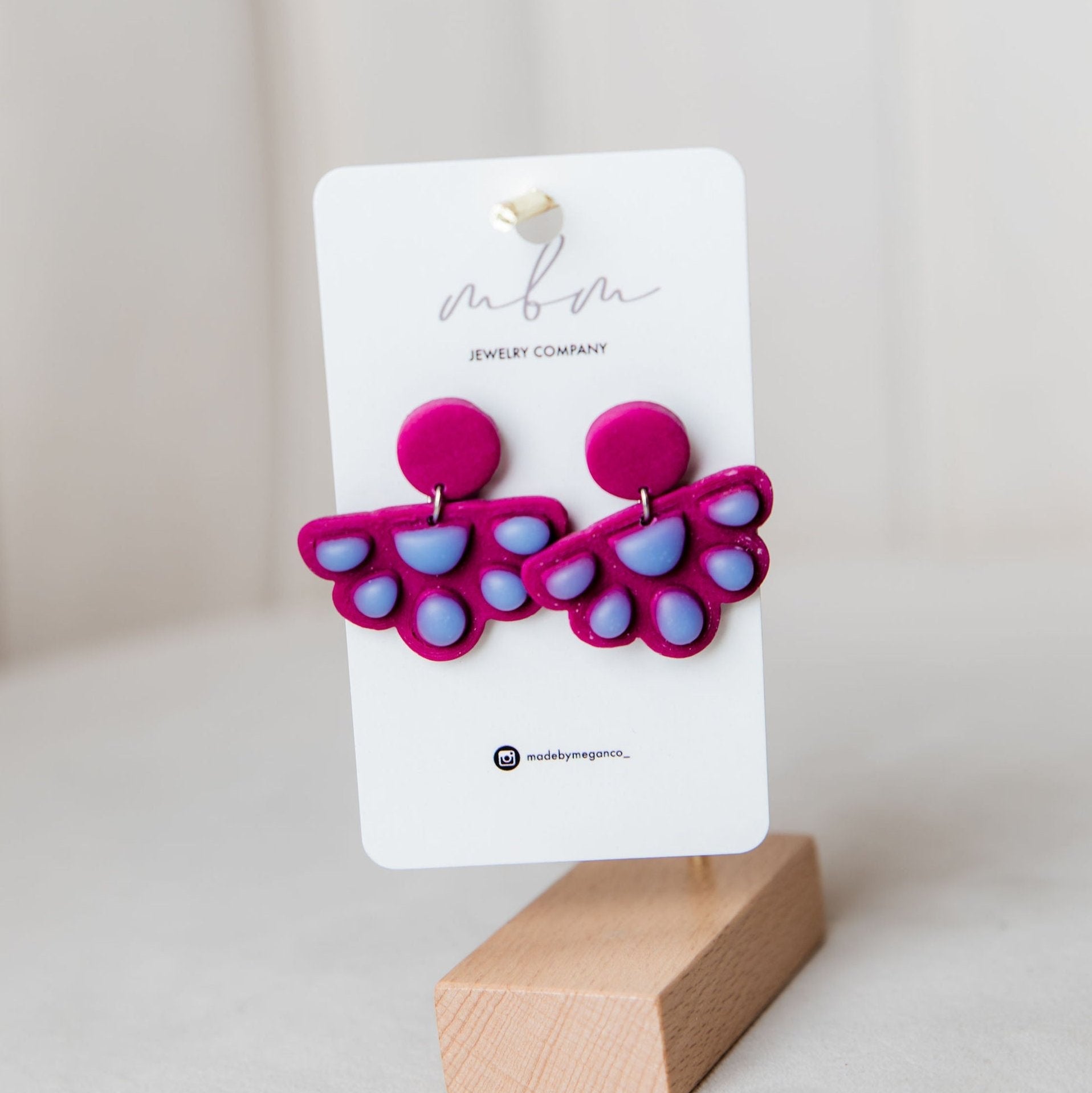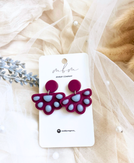 Hand-cut, 2 layered polymer clay - pink/plum, blue colors