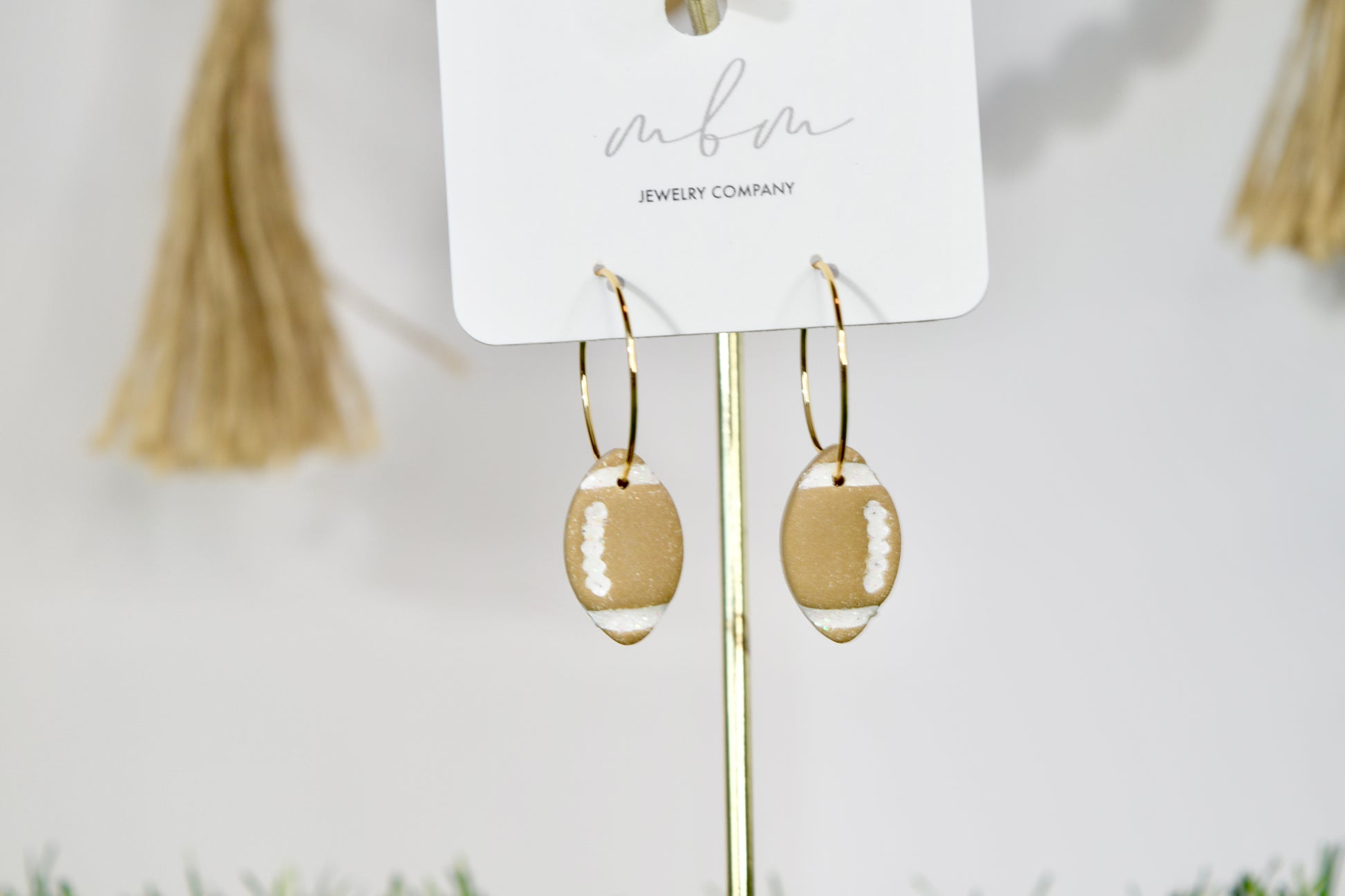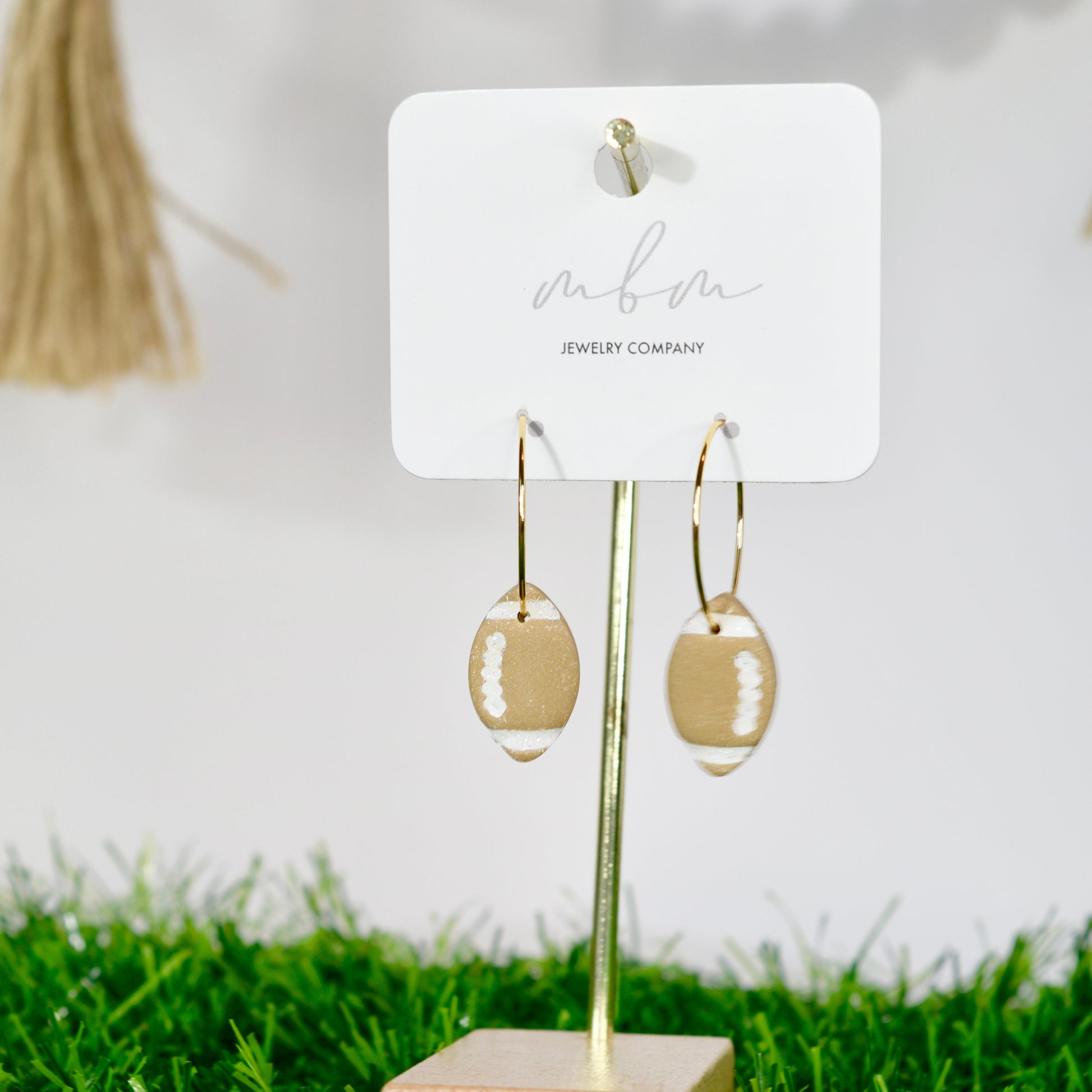 Tan/White Glitter Football Hoops